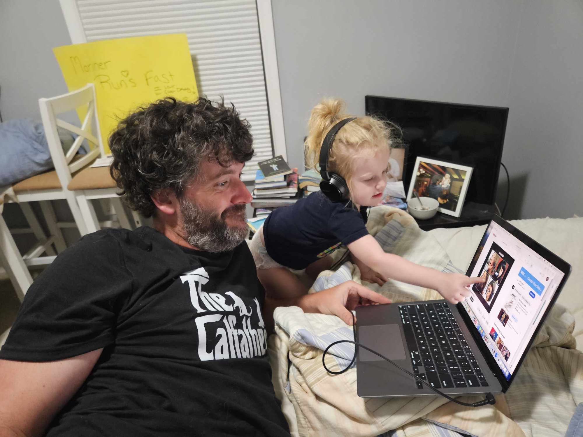 Pictured: my badass daughter and I jamming out to some Abbey Road.
